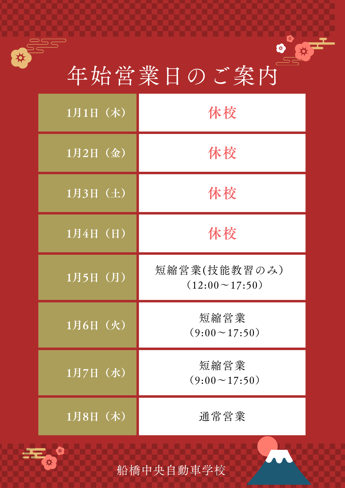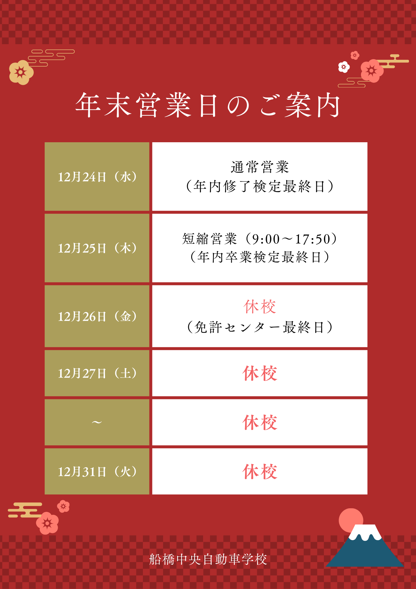 年末年始営業のお知らせ